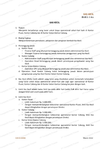 Meliputi ketentuan pemakaian, pelaporan dan pengisian kembali Kas Kecil.