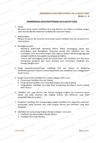 4. Setiap penyerahan/penerimaan Cek/Bilyet Giro dari Debitur ke Marketing