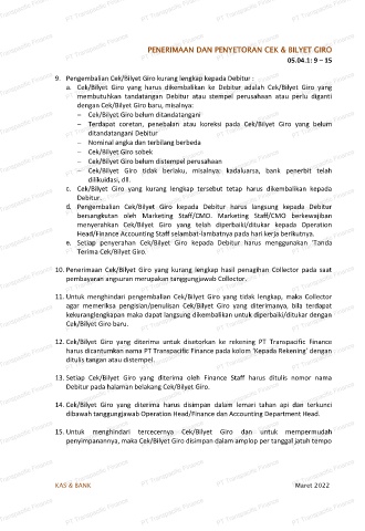 10. Penerimaan Cek/Bilyet Giro yang kurang lengkap hasil penagihan Collector pada saat
