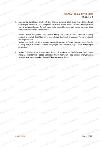 8. Setiap Cek/Bilyet Giro Debitur yang ditolak, Administration Staff/Finance Staff harus