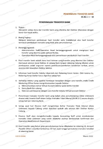 4. Hasil transfer bank adalah dana hasil kiriman uang/transfer yang diterima dari Debitur