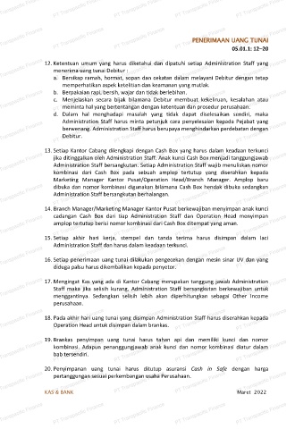 13. Setiap Kantor Cabang dilengkapi dengan Cash Box yang harus dalam keadaan terkunci