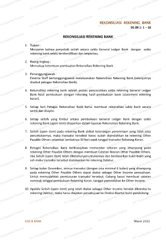 Mencakup ketentuan pembuatan Rekonsiliasi Rekening Bank.