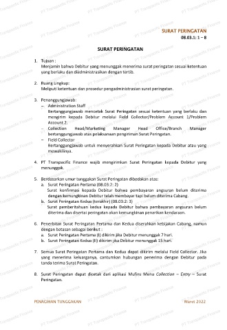 PT Transpacific Finance 6. Penerbitan Surat Peringatan Pertama dan Kedua diserahkan kebijakan Cabang, namun