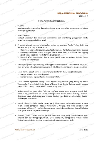 PT Transpacific Finance 4. Media penagihan angsuran yang tertunggak adalah formulir Tanda Terima (08.01.3:1)