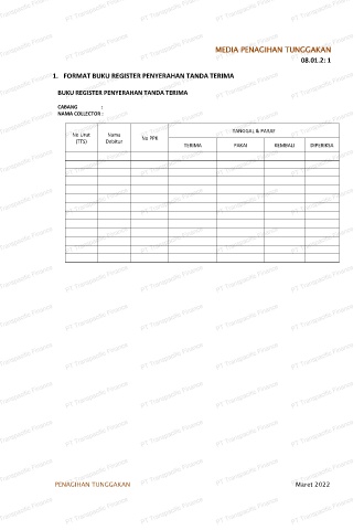 PT Transpacific Finance 1. FORMAT BUKU REGISTER PENYERAHAN TANDA TERIMA PT Transpacific Finance