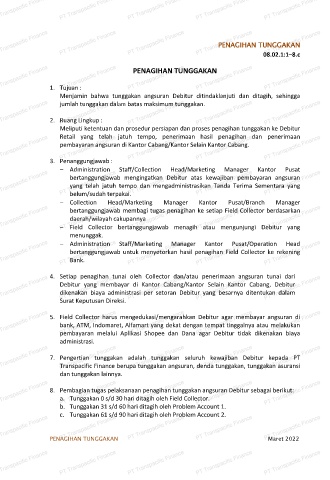 Meliputi ketentuan dan prosedur persiapan dan proses penagihan tunggakan ke Debitur